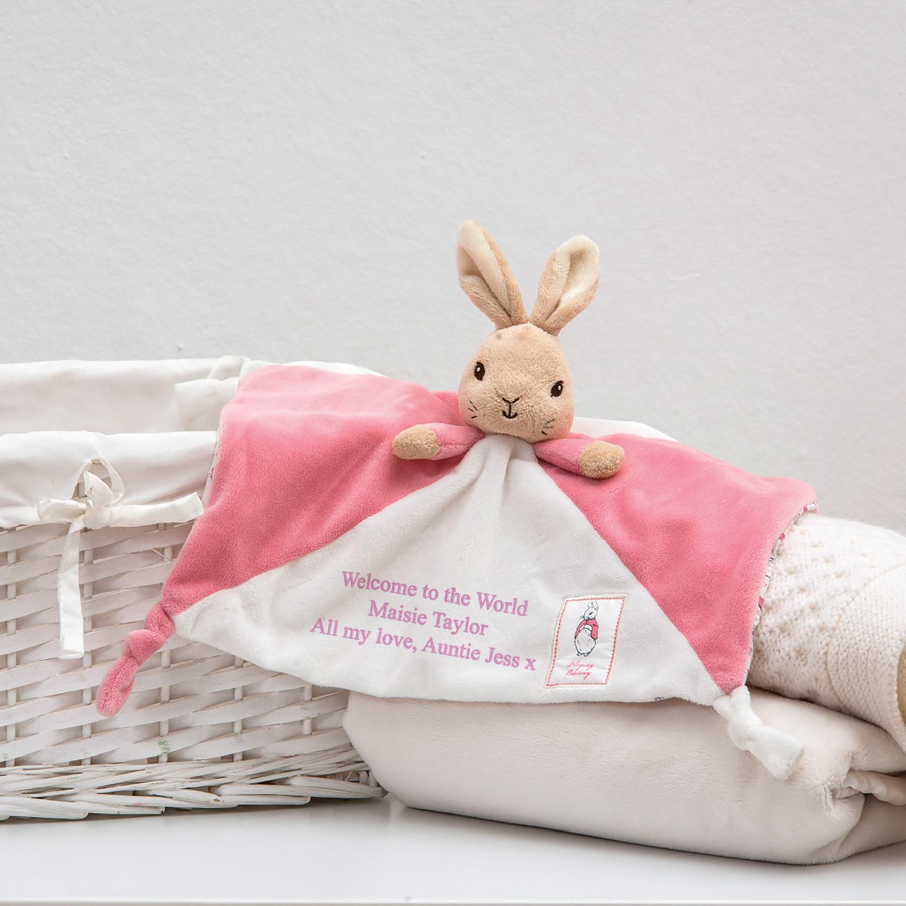 Wrap your little one in the timeless charm of Beatrix Potter with our Personalised Flopsy Bunny Comfort Blanket — a beautifully soft and soothing keepsake made for cuddles, comfort, and love.