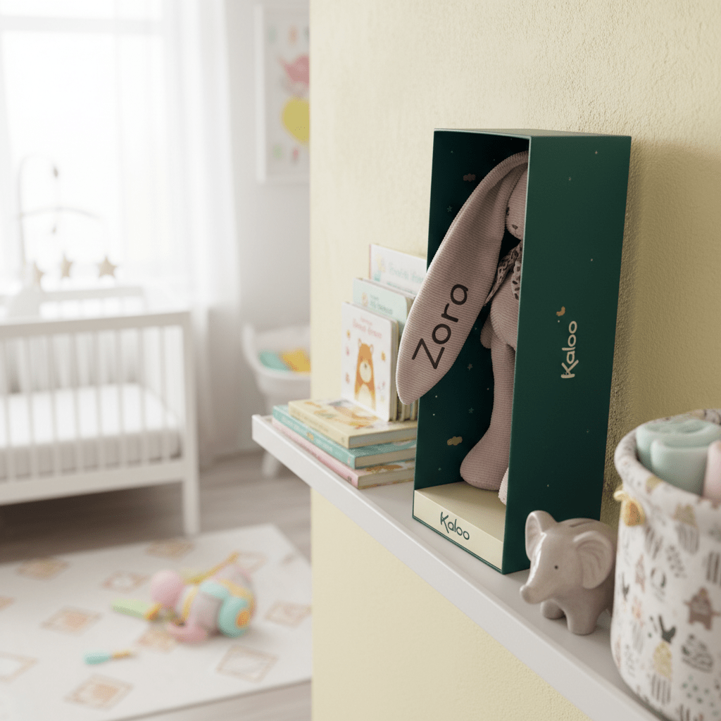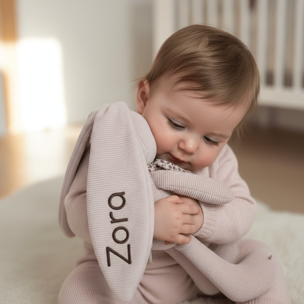With her wonderfully long ears, she can be hung close by so she’s never far away — whether resting on a pram, cot, or changing bag. Those extra-long ears aren’t just lovely to look at; they wrap around baby in the softest hugs, sharing comfort, warmth and quiet little moments together.